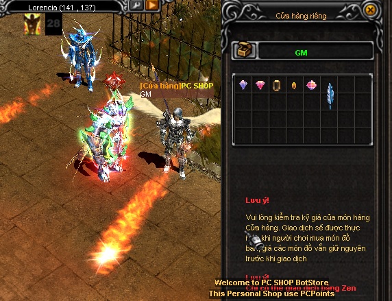 - NPC GM Store Tọa độ: 140 138 tại map Lorencia chỉ mua được = tiền tệ PcPoints